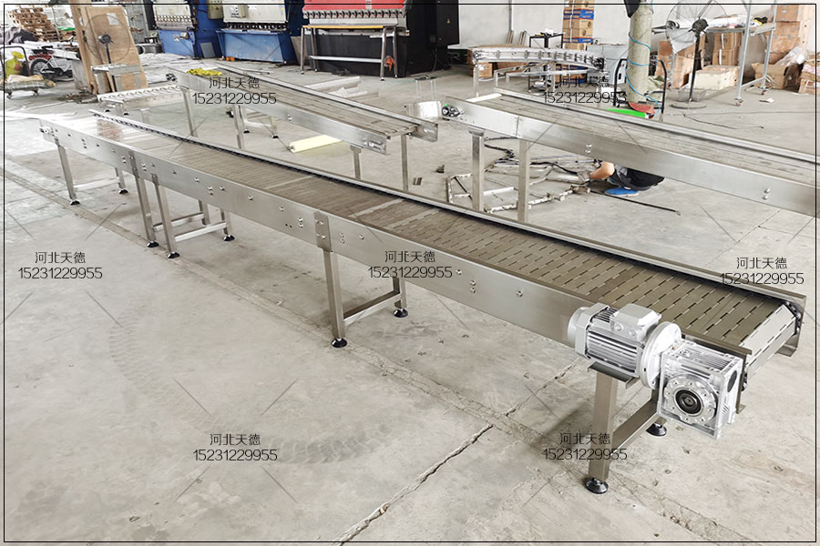 鏈板輸送機歡迎來電定制河北天德雞胸肉油炸流水線鏈板輸送機:15231229955 網址:http://m.xqjbx.cn/