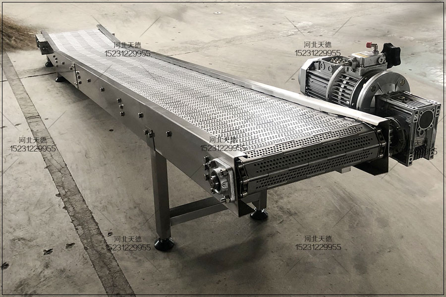 鏈板輸送機歡迎來電河北天德速凍蔬菜流水線鏈板輸送機:15231229955 網址:http://m.xqjbx.cn/