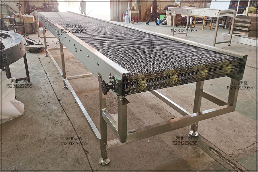 歡迎來電定制河北天德網帶式水果罐頭生產線不銹鋼鏈條輸送機:15231229955 網址:http://m.xqjbx.cn//