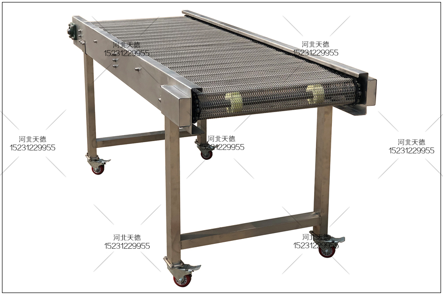 這臺是湖北的客戶定制的小型網帶輸送機,整機采用不銹鋼304材質,整臺機械看上去小巧漂亮,而且實用性也非常的高,客戶用來簡單的輸送小件物品,客戶反應這樣可以減少2個勞動力,而且提高的生產效率。